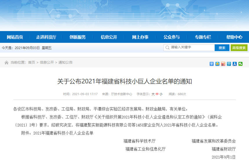 【華清電子】【榮譽】華清電子材料入選2021年福建省科技小巨人企業