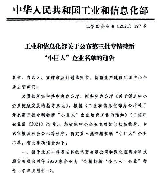 【華清電子】【榮譽】華清電子材料入選國家專精特新“小巨人”企業名單!?